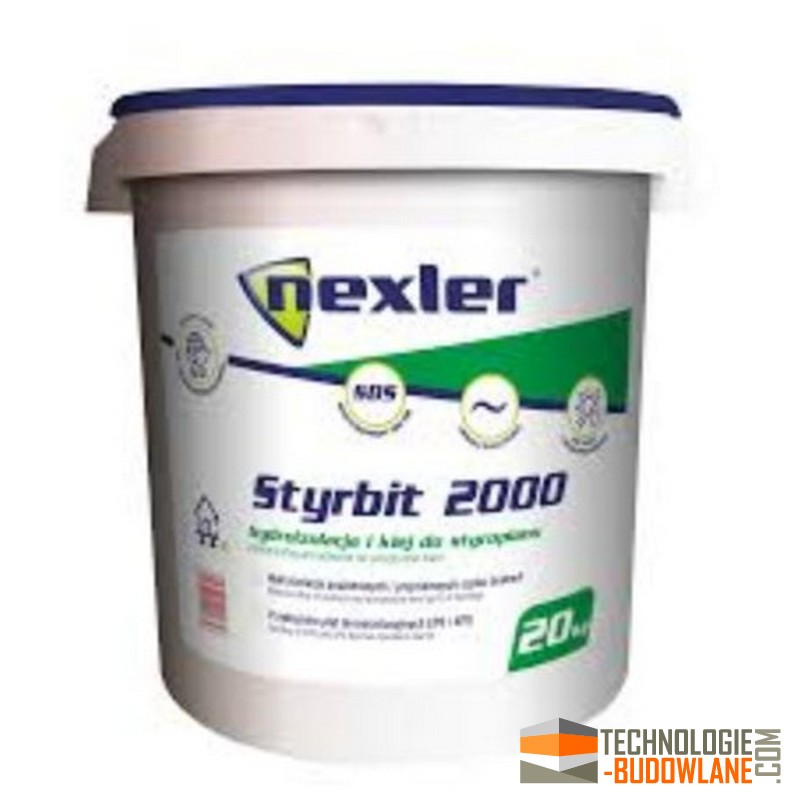 Kleje asfaltowe modyfikowane kauczukiem: Takie jak Styrbit 2000 Nexler – gotowa do użycia dyspersja asfaltowa, niezawierająca rozpuszczalników, doskonała do klejenia płyt styropianowych i jednoczesnej hydroizolacji.