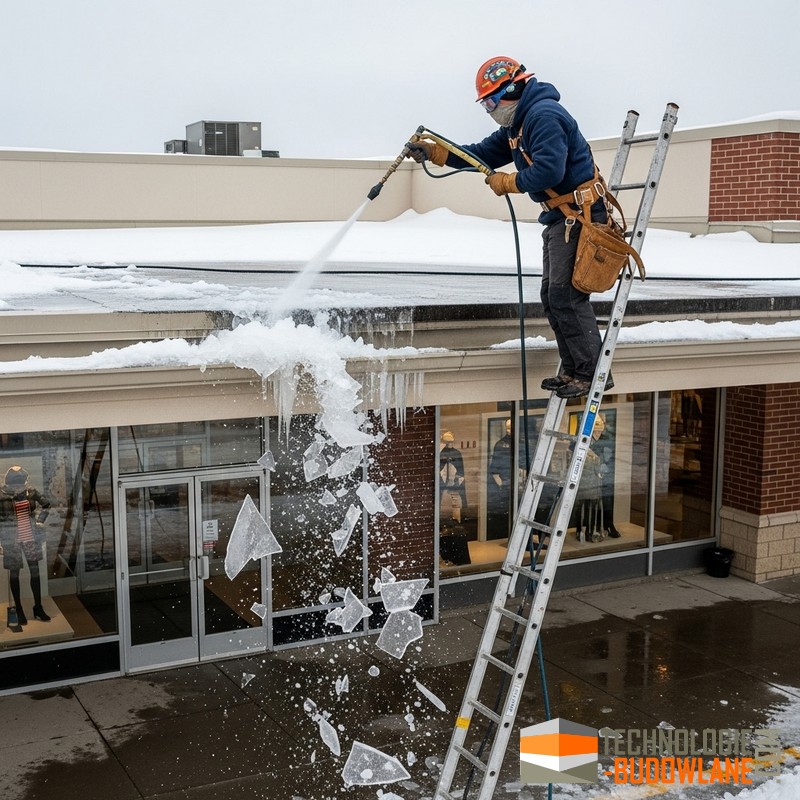 Usuwanie lodu z membran dachowych i papy.